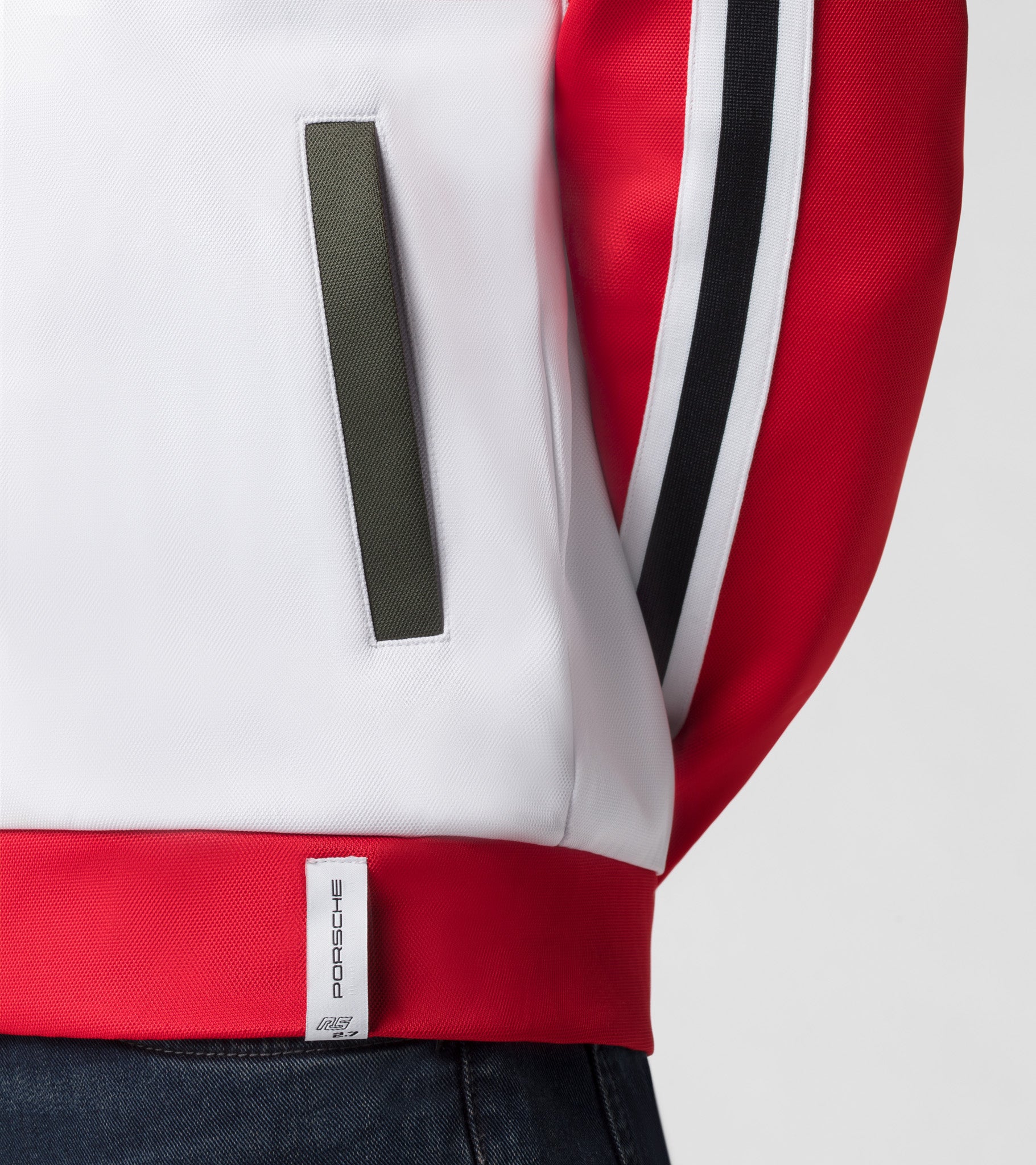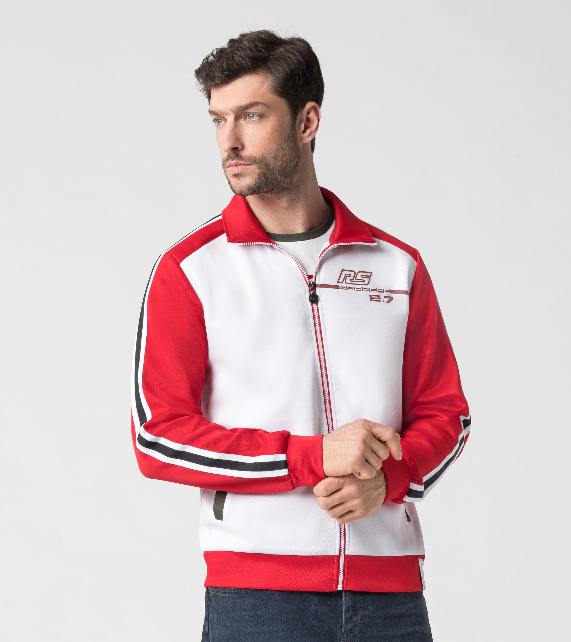 Suitable for leisure and everyday wear: Comfortable and stylish sweatshirt with standing collar. Featuring RS 2.7 print on the chest and Porsche print on the back, this jacket is particularly sporty and modern.